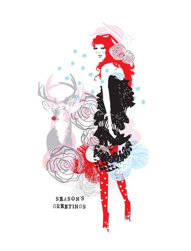 I had already created my 'miss sugarpop' illustration recently and decided she'd look pretty special all christmassy and decked out with festive cheer for the holidays!